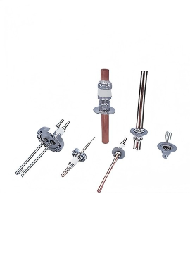 Carries high voltage or current through a vacuum wall to a vacuum device.